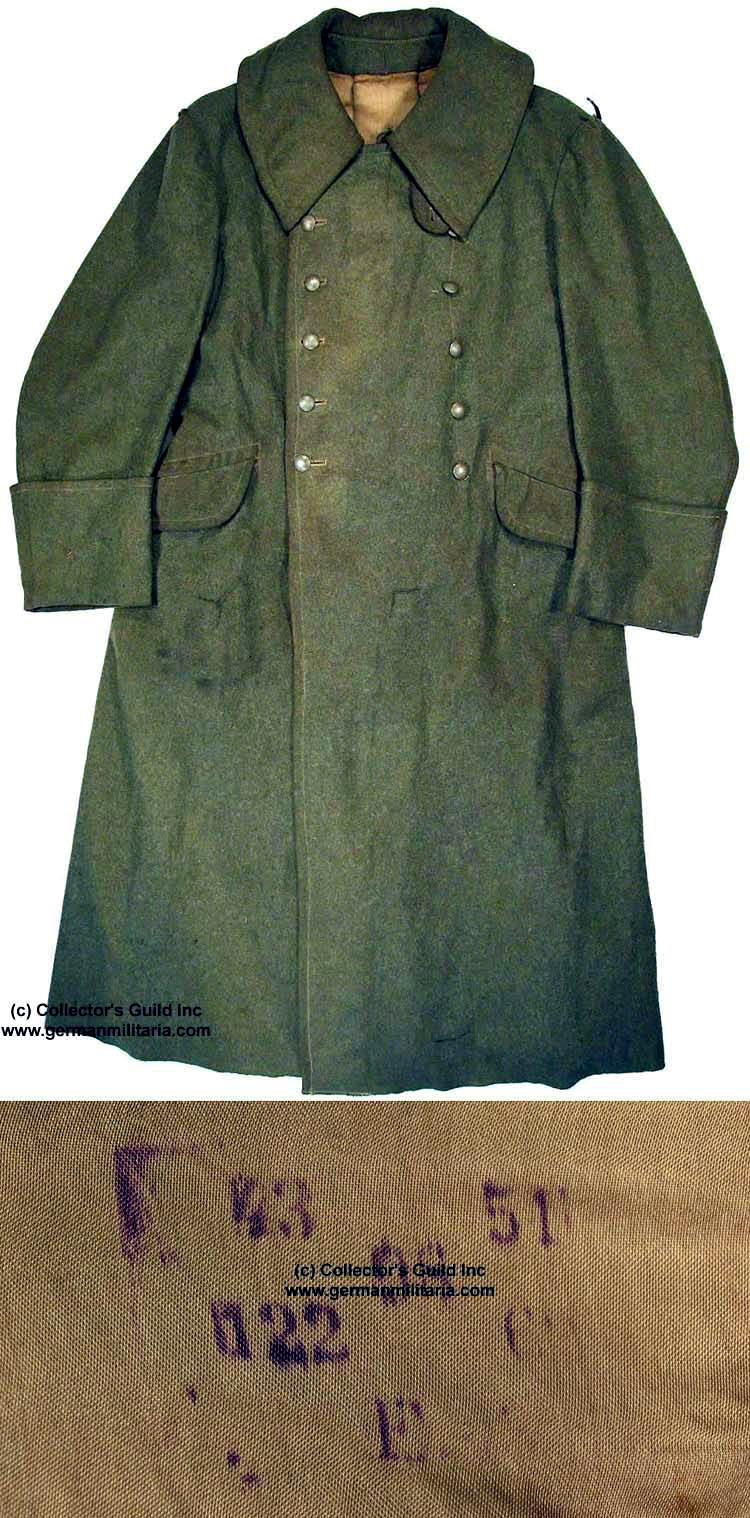 До введения черной униформы солдаты СС носили светло-коричневые с табачным оттенком шинели штурмовиков СА, которые отличались от последних только черными петлицами и черным кантом красных нарукавных повязок с изображением свастики. Первая эсэсовская шинель была черного цвета и предназначалась в первую очередь для солдат и офицеров Лейбштандарта СС “Адольф Гитлер”. Шинель была двубортной и застегивалась на 6 пуговиц диаметром примерно равным 21 мм. Сзади имелись два полухлястика, соединенных вертикальной застежкой на две пуговицы. Высокая шлица сзади могла быть застегнута на пять малых пуговиц диаметром 12 мм. На рукавах имелись отворачивавшиеся обшлаги, а клапаны боковых карманов были слегка скошены. На левой стороне груди находился внутренний карман. Края воротника, борта и низ были отстрочены, а воротник обшивался белым кантом. Такой же кант имели черные петлицы. На правом плече шинели располагался витой погон, над клапаном левого кармана была предусмотрена прорезь для кортика. Шинель носили с красной повязкой. Офицеры войск СС в званиях оберфюрера и выше носили шинели, подкладка лацканов которых была серебристо-серой. У остальных цвет подкладки соответствовал цветы шинели. Кроме шинелей офицерам войск СС разрешалось приобретать и носить кожаные пальто цвета “фельдграу” с погонами поверх и нарукавным орлом, прорезиненные плащи с темно-зеленом воротником или цвета “фельдграу”и прорезиненные плащи для мотоциклистов!